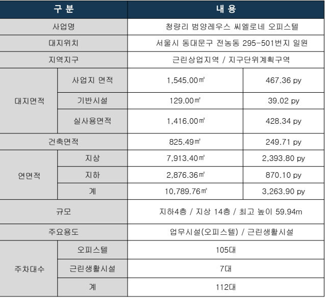 즉시입주 · 임대수익 OK! 청량리 범양레우스 씨엘로네 관심고객등록 ★회사보유분 선착순 특별할인★ 즉시입주 계약즉시 임대수익실현 일부호실 풀옵션구성 제공옵션 선납할인 계약우선권 보장 즉시 실거주 가능·잔여호실 계약중 | 사업개요 | 입지여건 | 단지안내 근린생활시설 옥상정원 | 동·호안내 | 세대안내 | 개발계획 중랑천 복개사업 관심고객등록 이름 (필수) 전화번호 (필수) 개인정보 수집 및 이용에 동의합니다. ※개인정보 수집및 이용에 관한안내 “청량리범양레우스씨엘로네”는 고객님 들에게 분양에 필요한 정보 이용을 위해 필요한 최소한의 범위로 개인정보를 수집합니다. 관심고객등록을 통하여 아래와 같은 개인정보를 수집하고 있습니다. 수집항목 : 이름, 휴대전화번호 수집방법 : 홈페이지 관심고객등록을 통한 개인정보 수집/이용, 개인정보 처리위탁의 내용에 대해 각각 「동의」버튼 또는「비동의」버튼을 클릭할 수 있는 절차를 마련하여, 각각의 「동의」버튼을 클릭하면 해당 사항을 동의한 것으로 간주합니다. 개인정보의 수집 및 이용목적 개인정보 항목별 구체적인 수집 및 이용목적은 다음과 같습니다. 이름, 전화번호 : 분양정보및 분양상담등 안내를 위해 제공받고 이용목적이 달성된 후에는 해당정보를 지체없이 파기합니다. 개인정보 수집 동의 거부권 : 모든 고객은 동의를 거부할 수 있으며, 동의를 거부할 경우 관심고객 등록이 불가합니다.